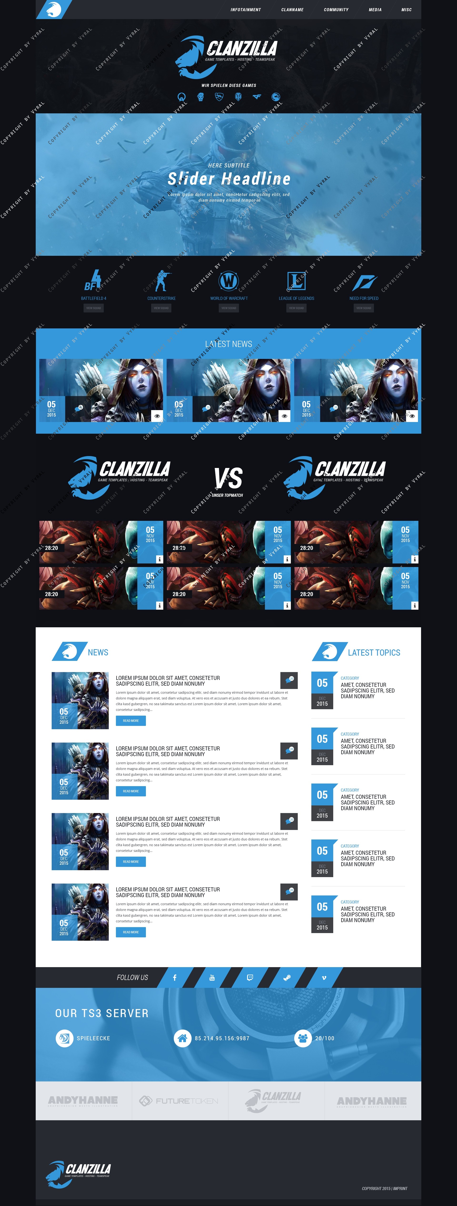 - Komplett individualisierbares Clan bzw Gaming Template