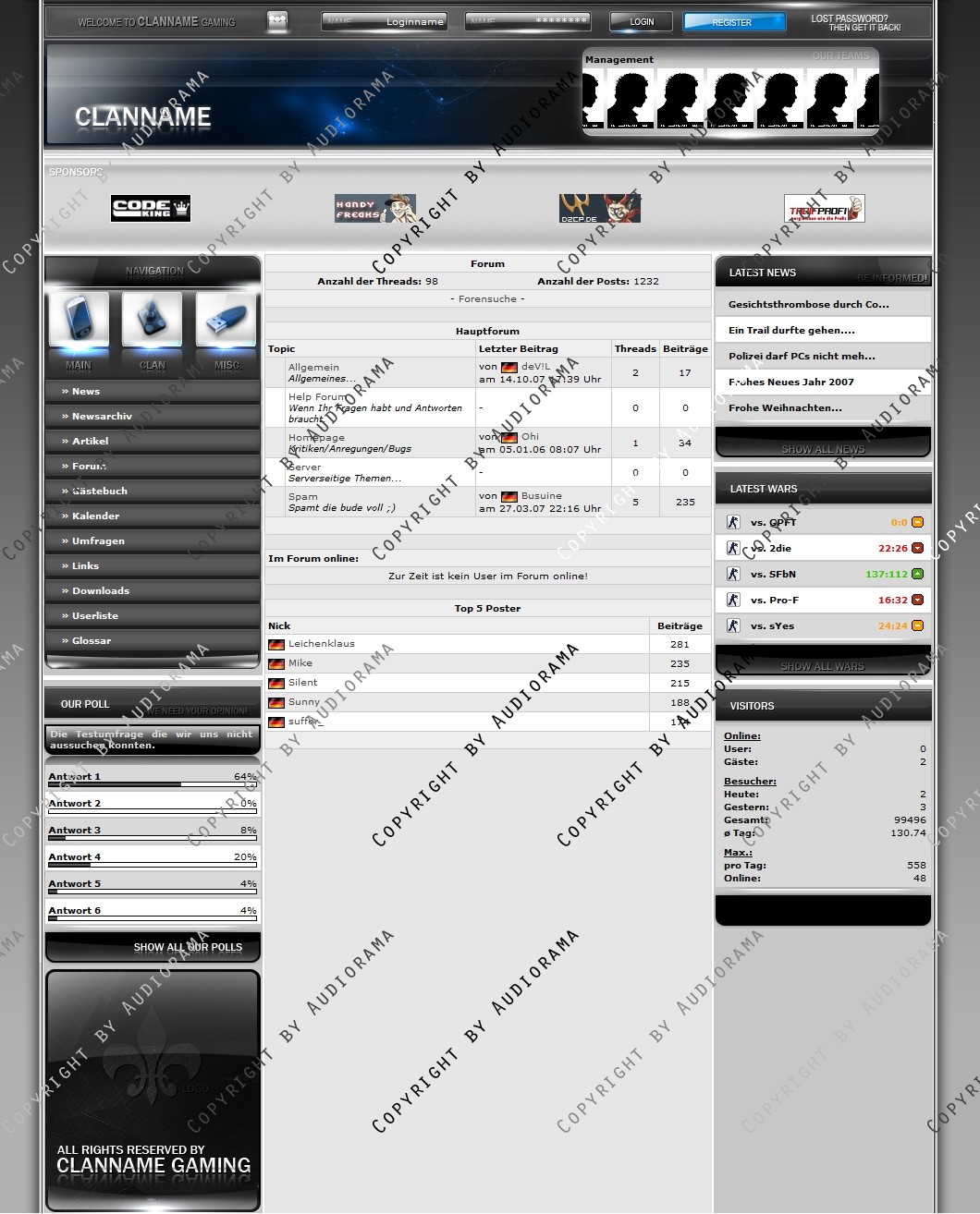 Ein großes Lob an ClanDesigns.org und codeking.eu.